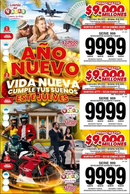 - Santiago de Cali, enero 2 de 2025. La Lotería del Valle juega este jueves 2 de enero con un premio mayor de $9.000 millones, un seco por $500 millones, dos secos de $100 millones, 3 secos de $60 millones, un seco de $40 millones y 25 secos de $30 millones.