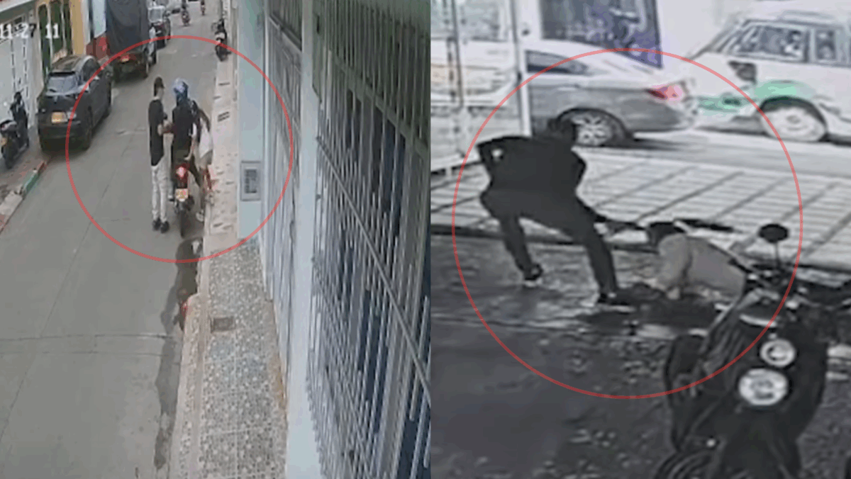 A las 11:27 a. m., en la carrera 11 con calle 17 del barrio Fuenmayor, las cámaras de seguridad captaron el momento en que un hombre se acercó a dos mujeres que estaban estacionadas en una motocicleta.
