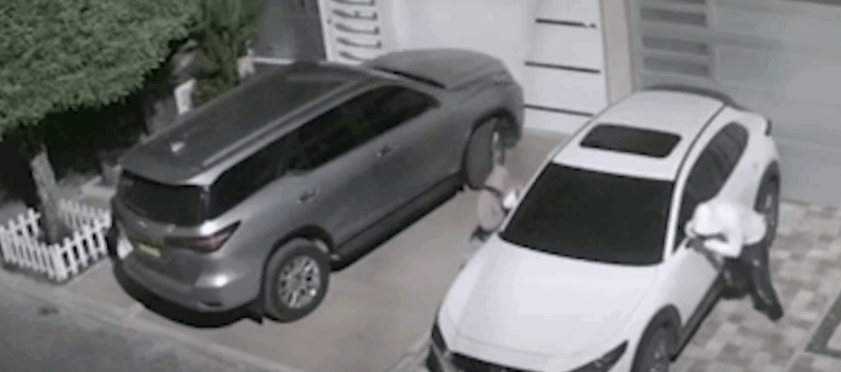 En el primer registro se les ve acercarse a un automóvil y forzar los espejos laterales sin lograr arrancarlos. Minutos después se repite la maniobra con dos vehículos diferentes en otro sector.