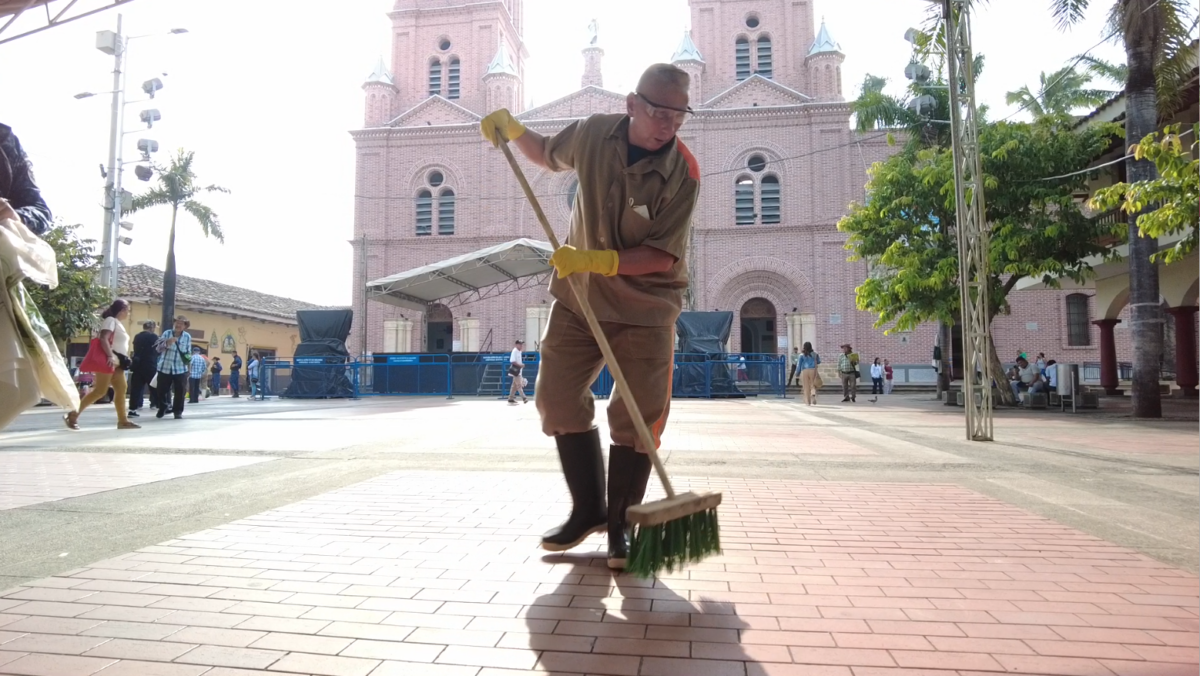 Un grupo de reclusos del centro penitenciario de Buga, próximos a recuperar su libertad, participó en una jornada de limpieza y embellecimiento en la plazoleta de la Basílica del Señor de los Milagros.